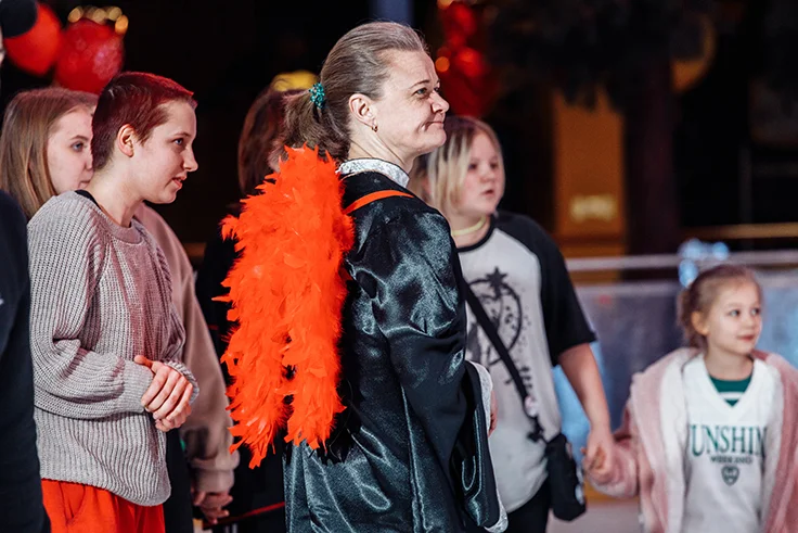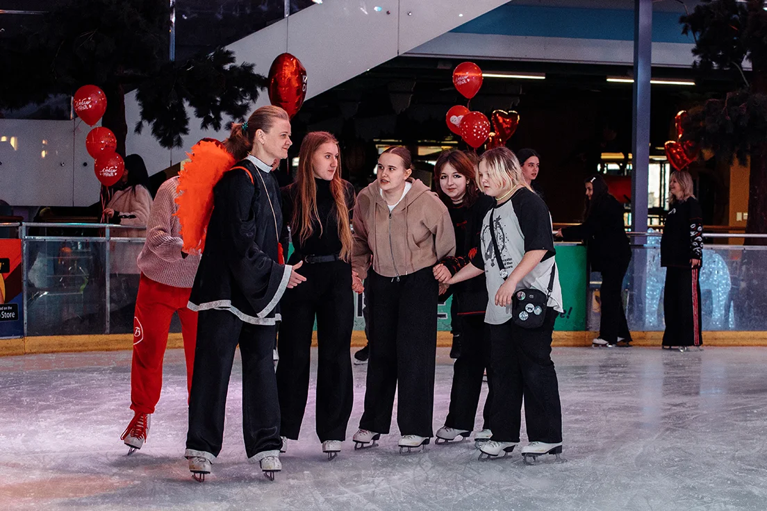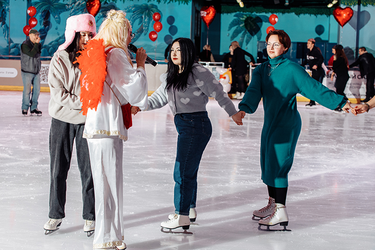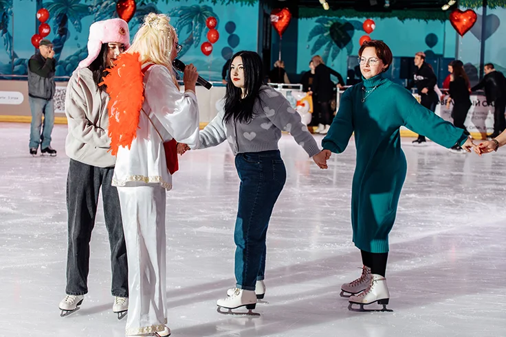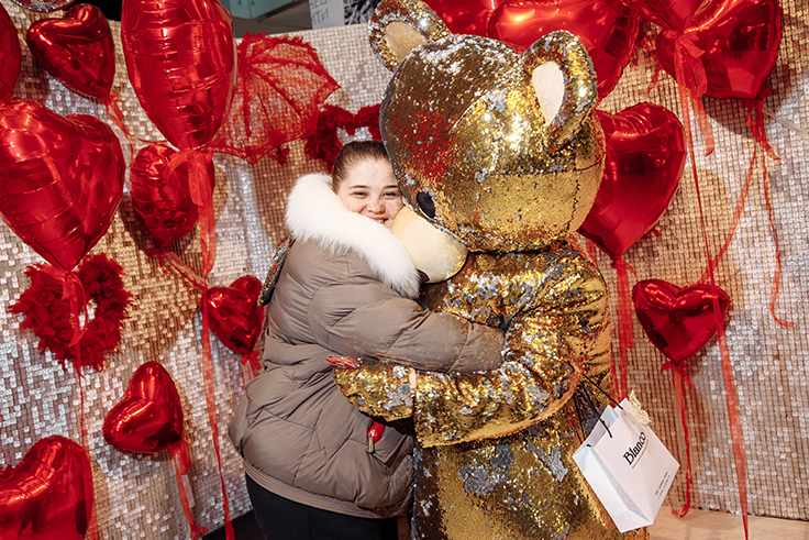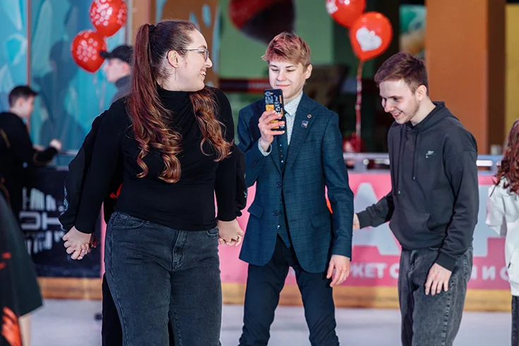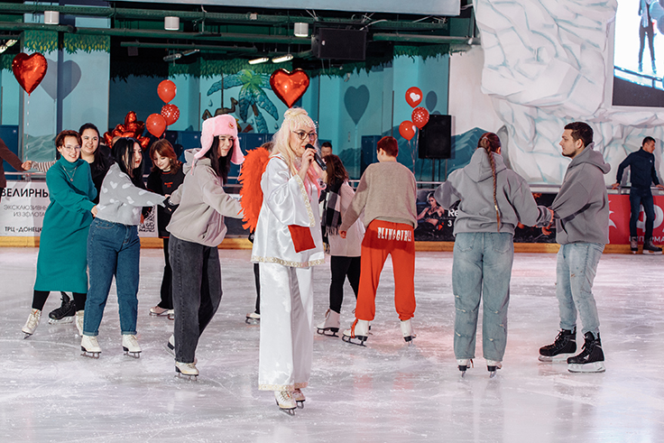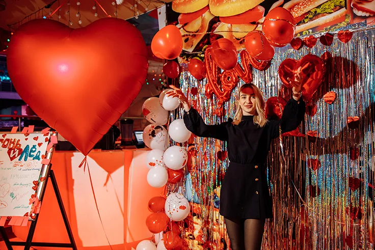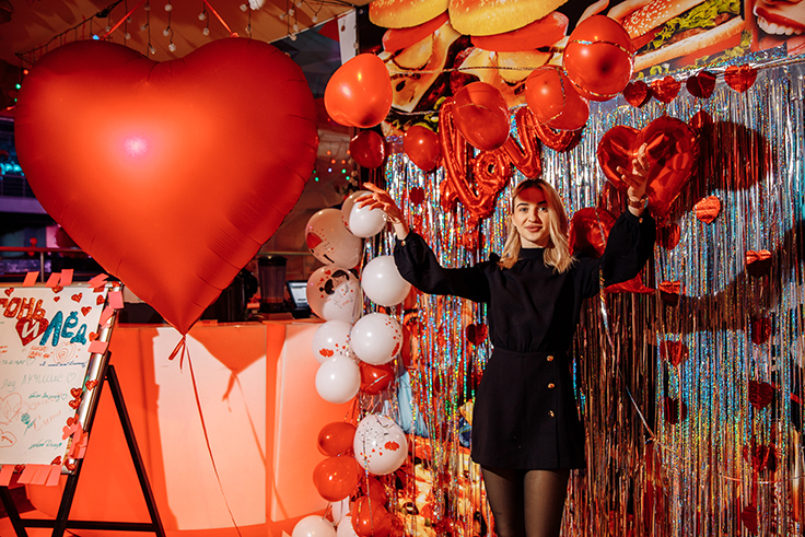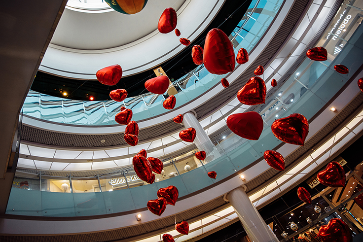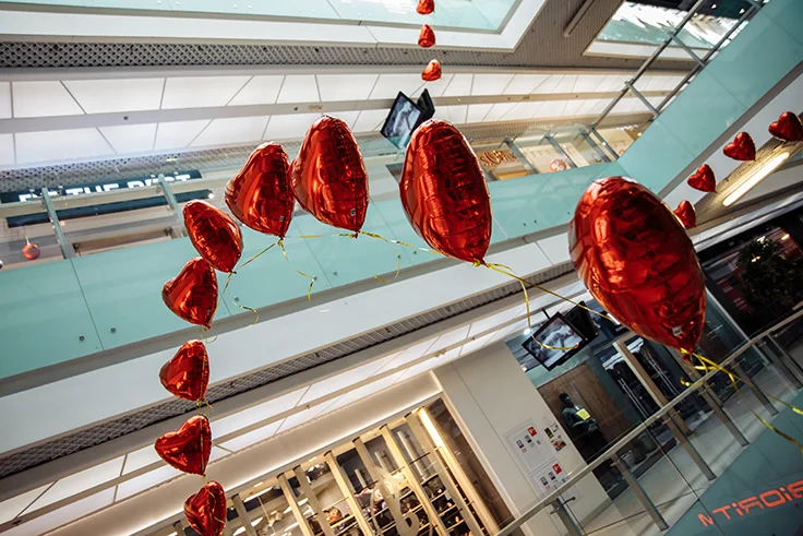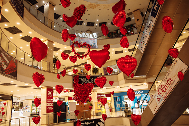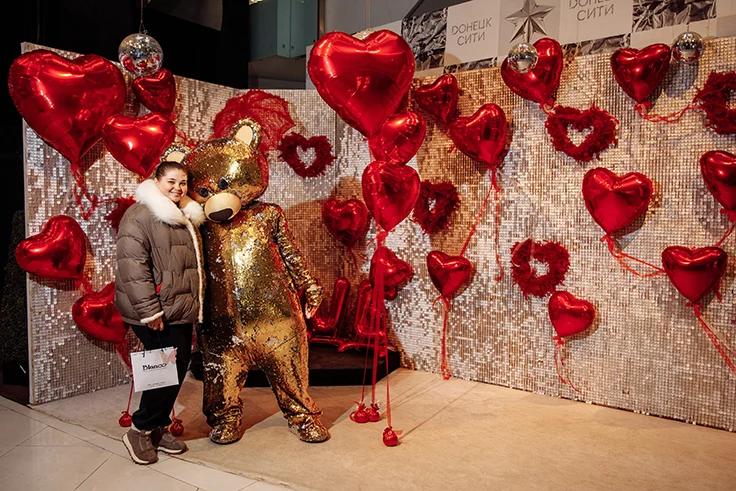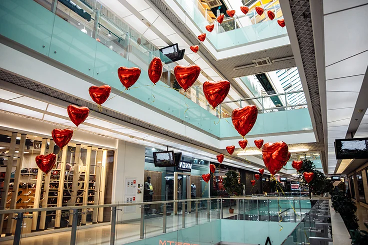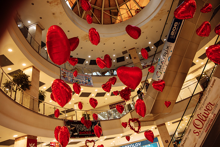 14 февраля торговый центр превращается в пространство любви и праздника. Везде — от входа до фудкорта — царит романтическое настроение: мягкая подсветка в розовых и алых тонах, гирлянды в форме сердечек, ненавязчивая музыка с лирическими мелодиями. У фотозоны пары выстраиваются в очередь, чтобы сделать снимок. В воздухе пахнет кофе и свежей выпечкой, а в витринах магазинов мерцают валентинки и подарочные наборы. Люди улыбаются чаще, выбирают подарки, шепчутся, смущённо держась за руки.