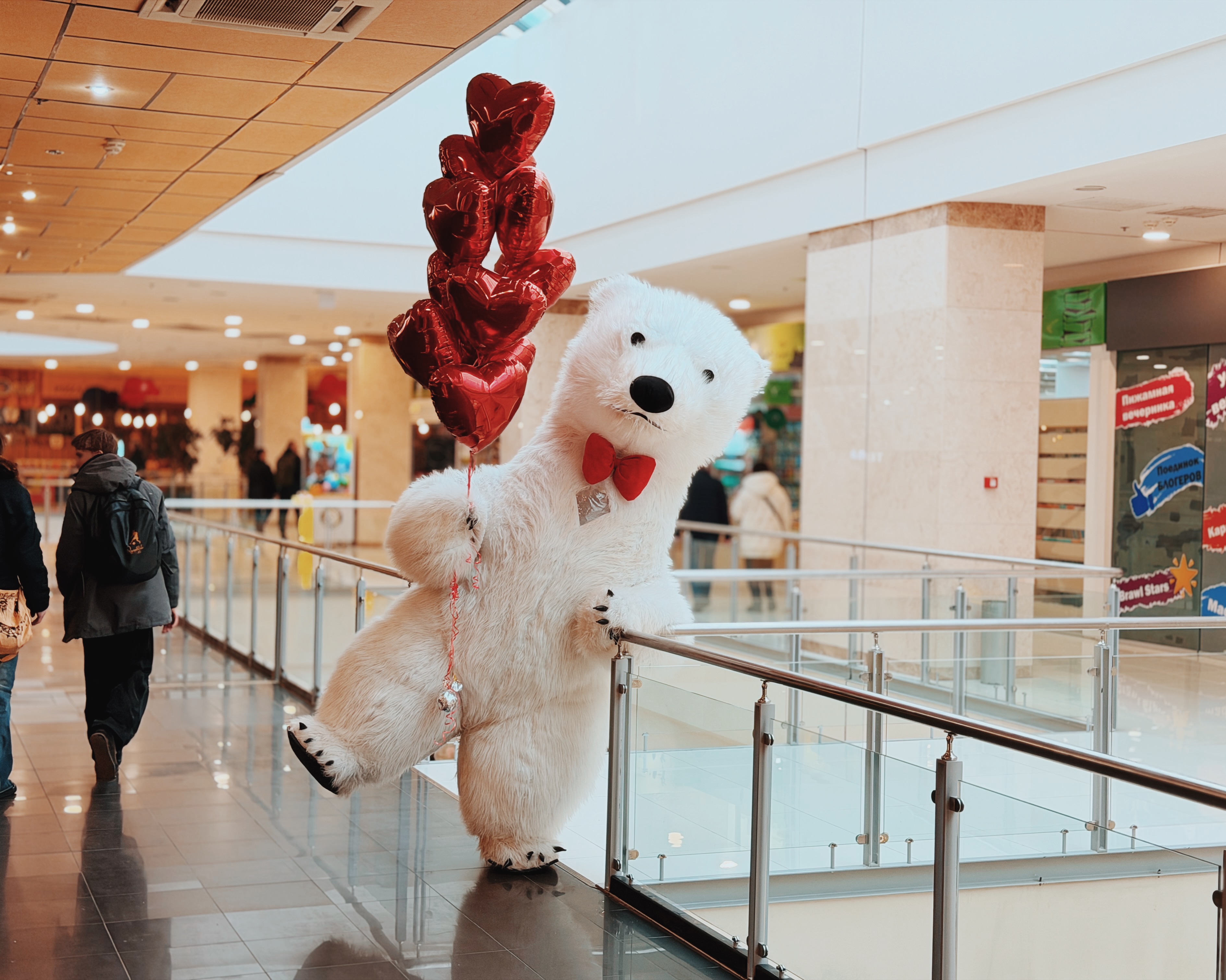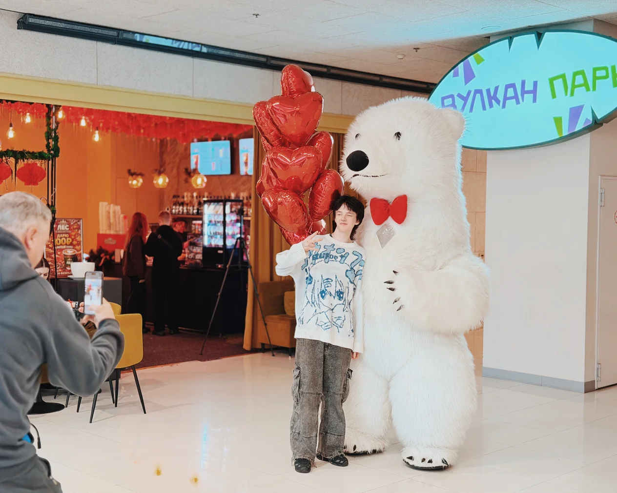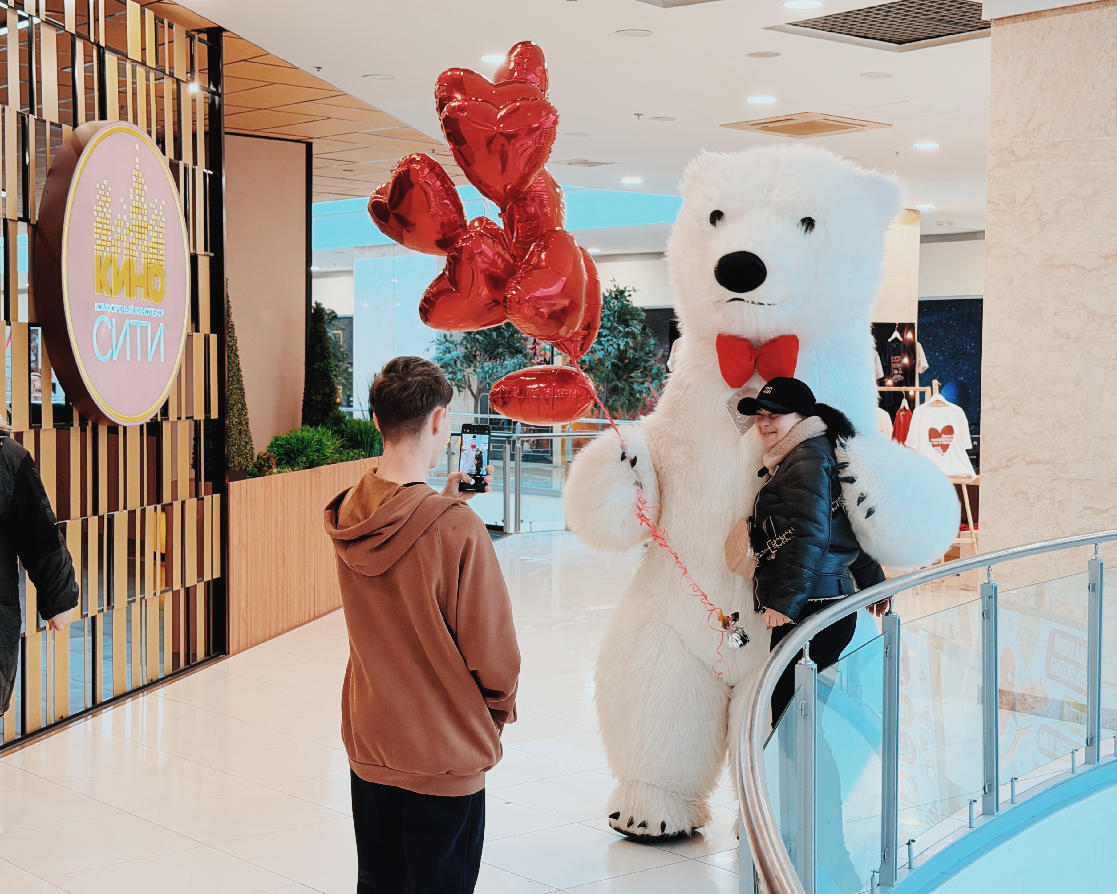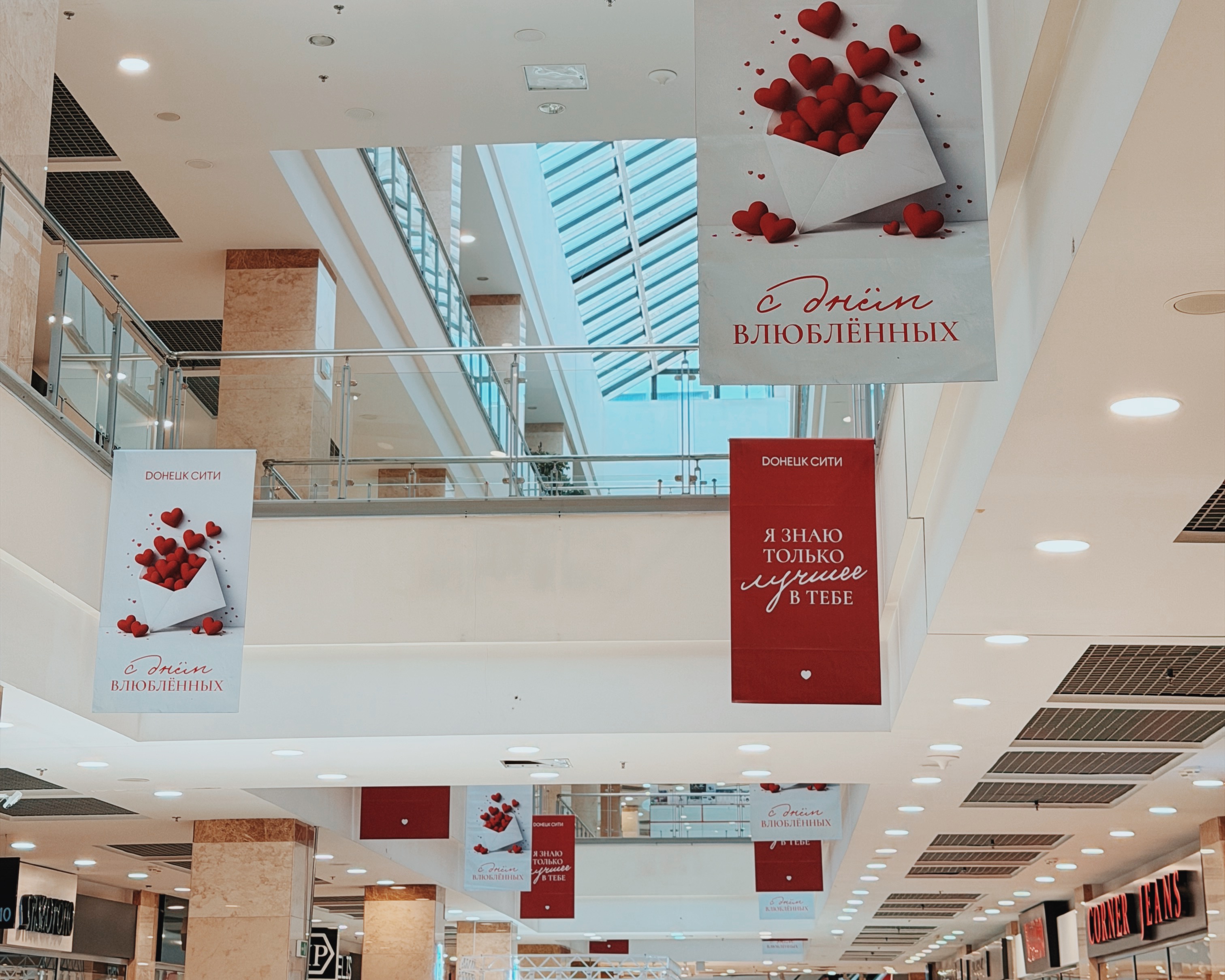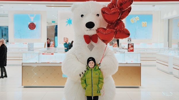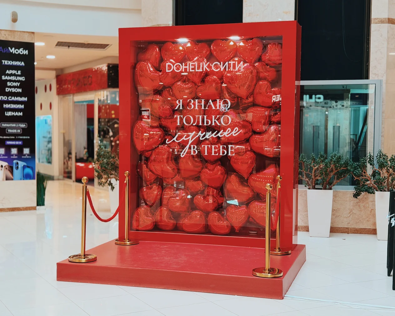 Весь день в торговом центре царила особая атмосфера: воздушные шары, гирлянды из сердец, романтическая музыка создавали настроение праздника.