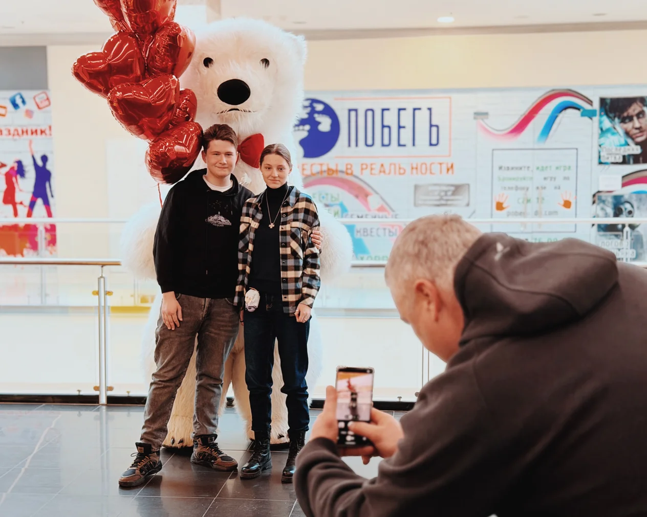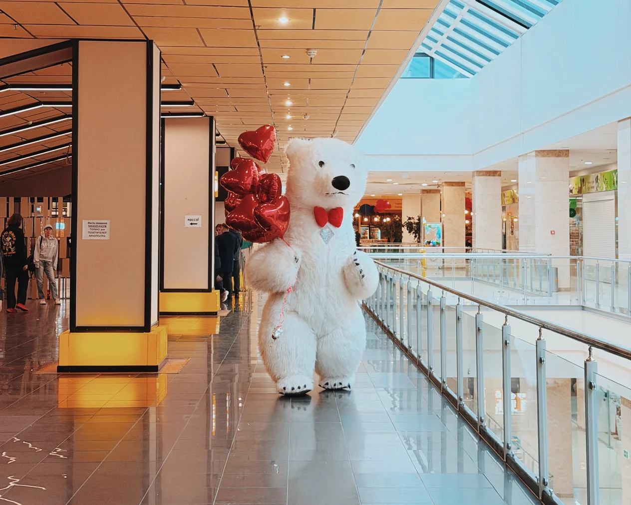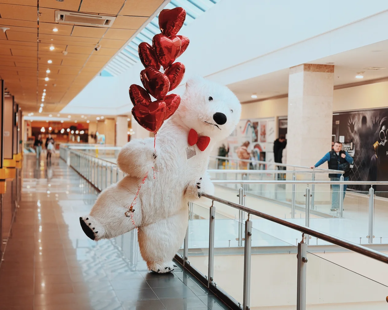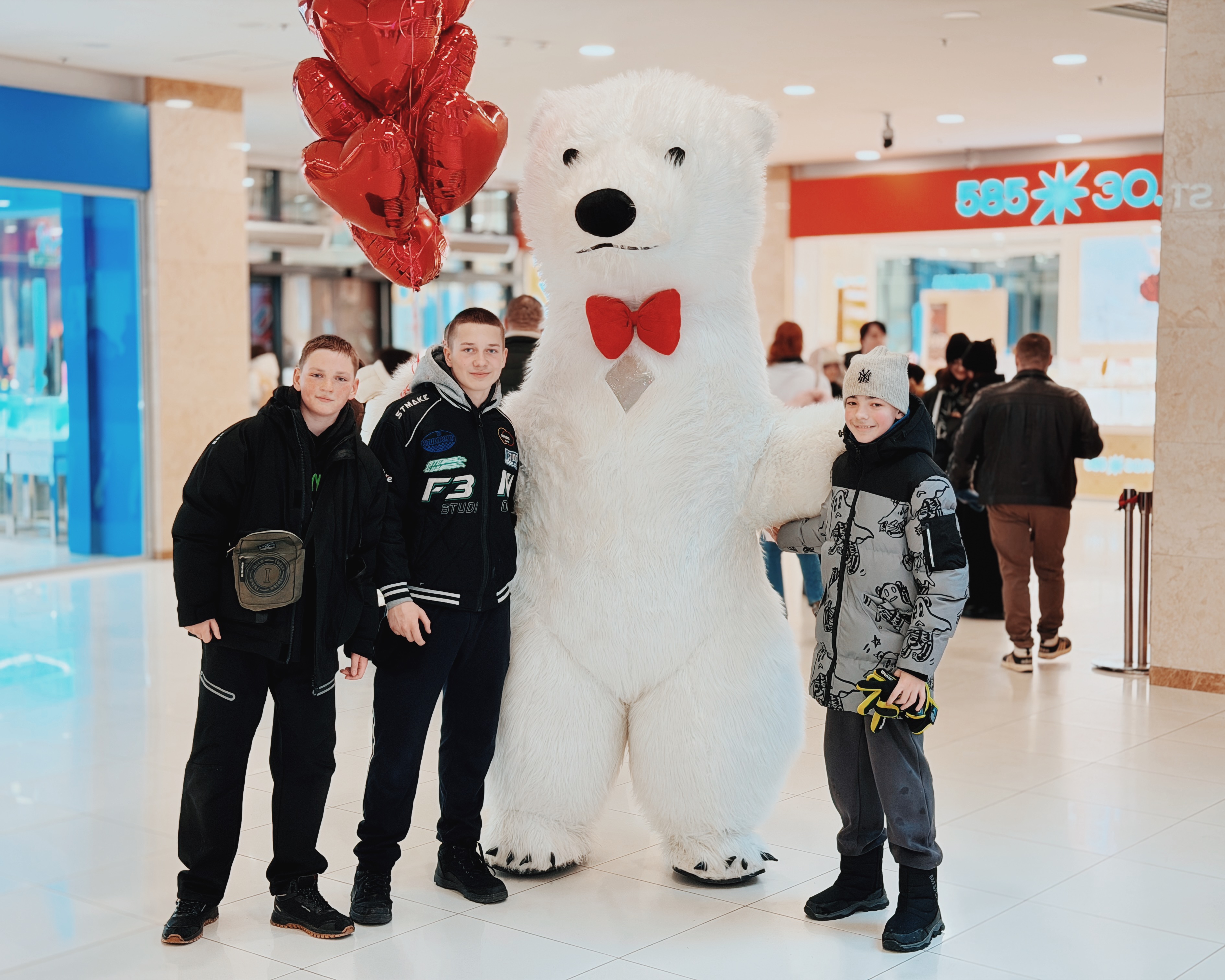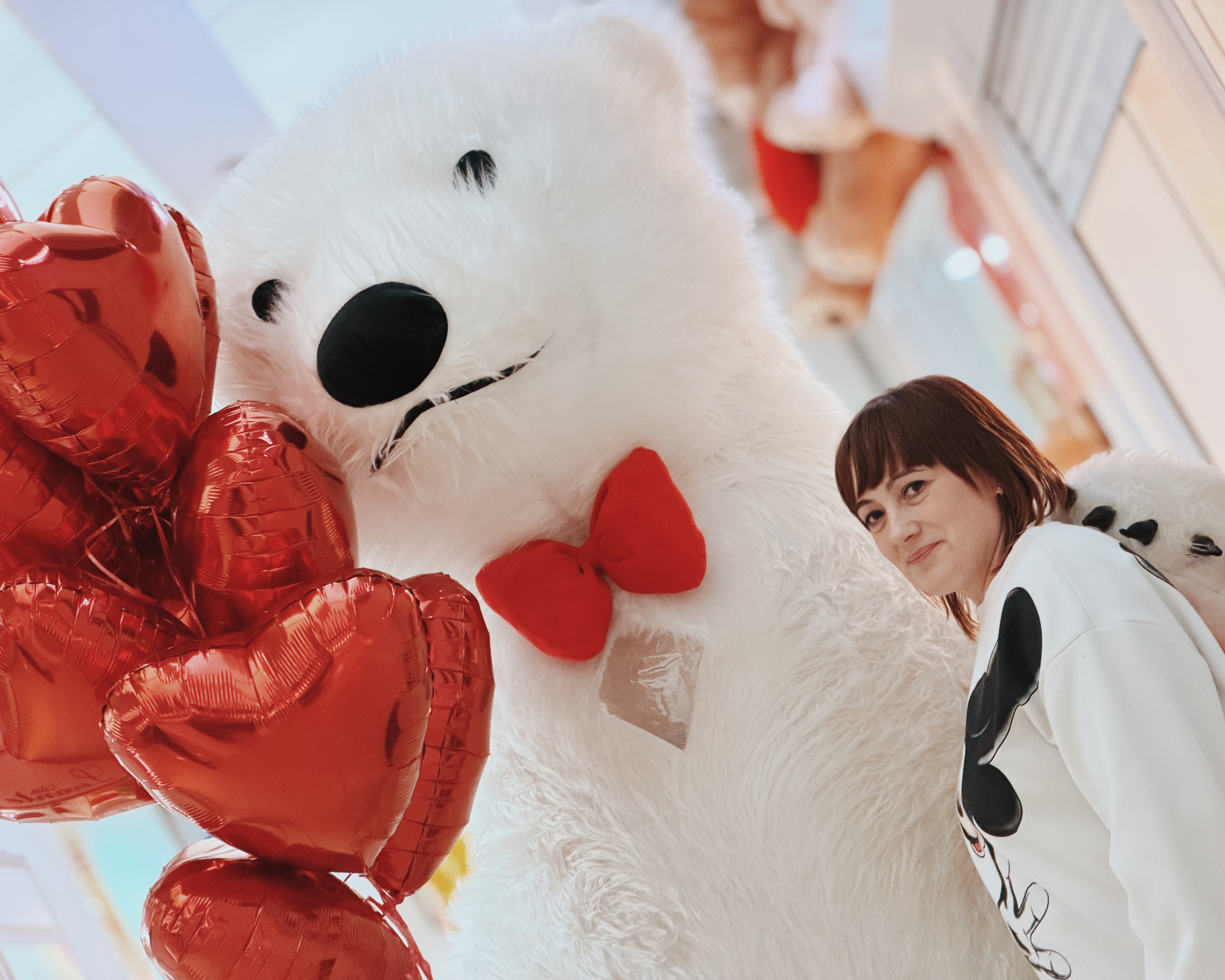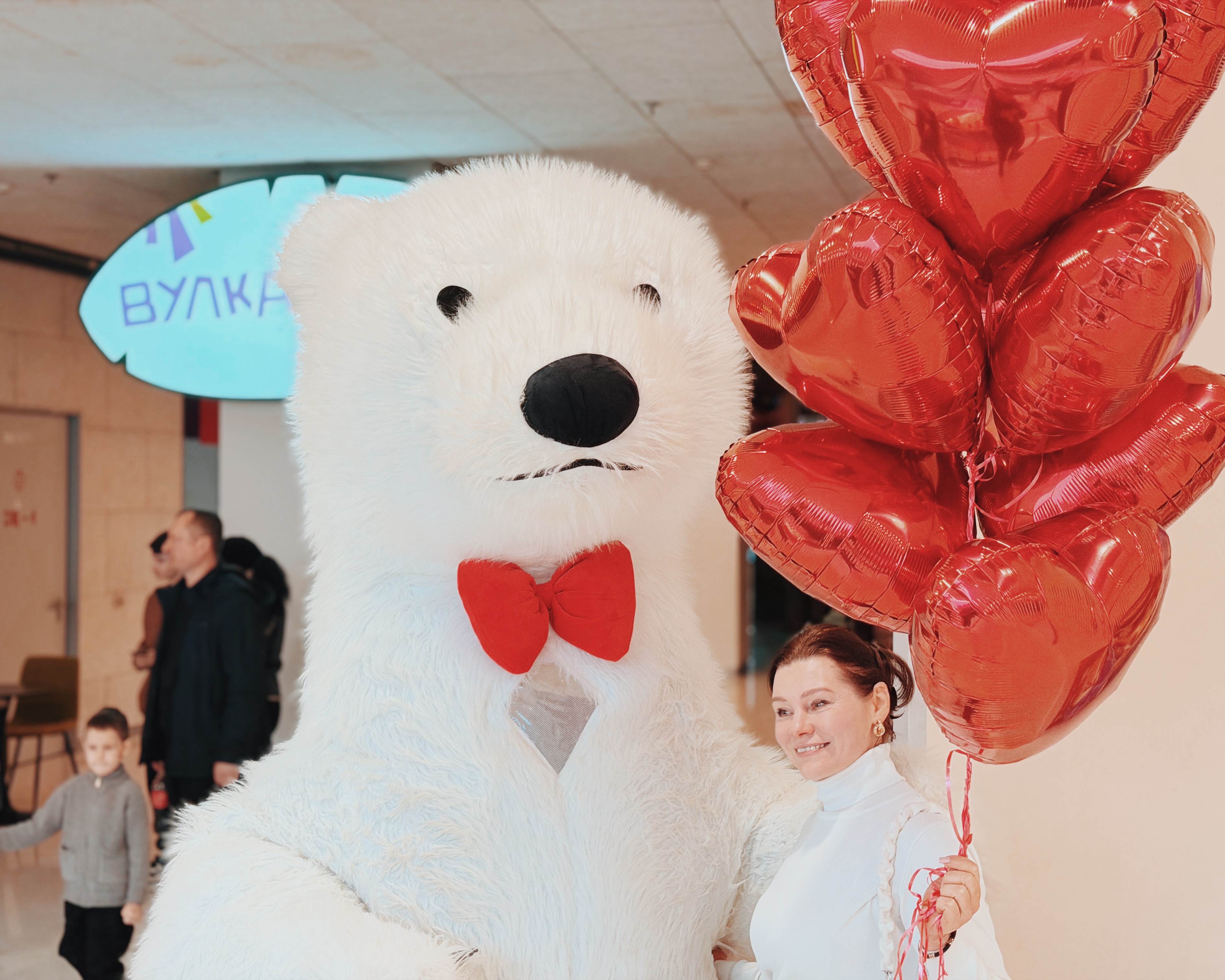 Весь день в торговом центре царила особая атмосфера: воздушные шары, гирлянды из сердец, романтическая музыка создавали настроение праздника.