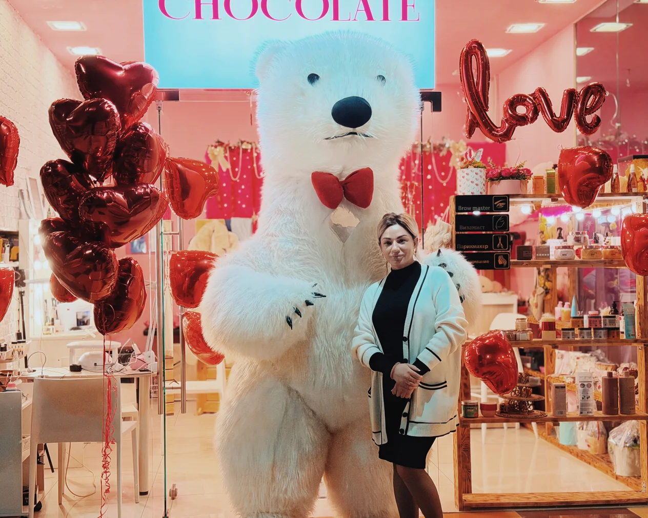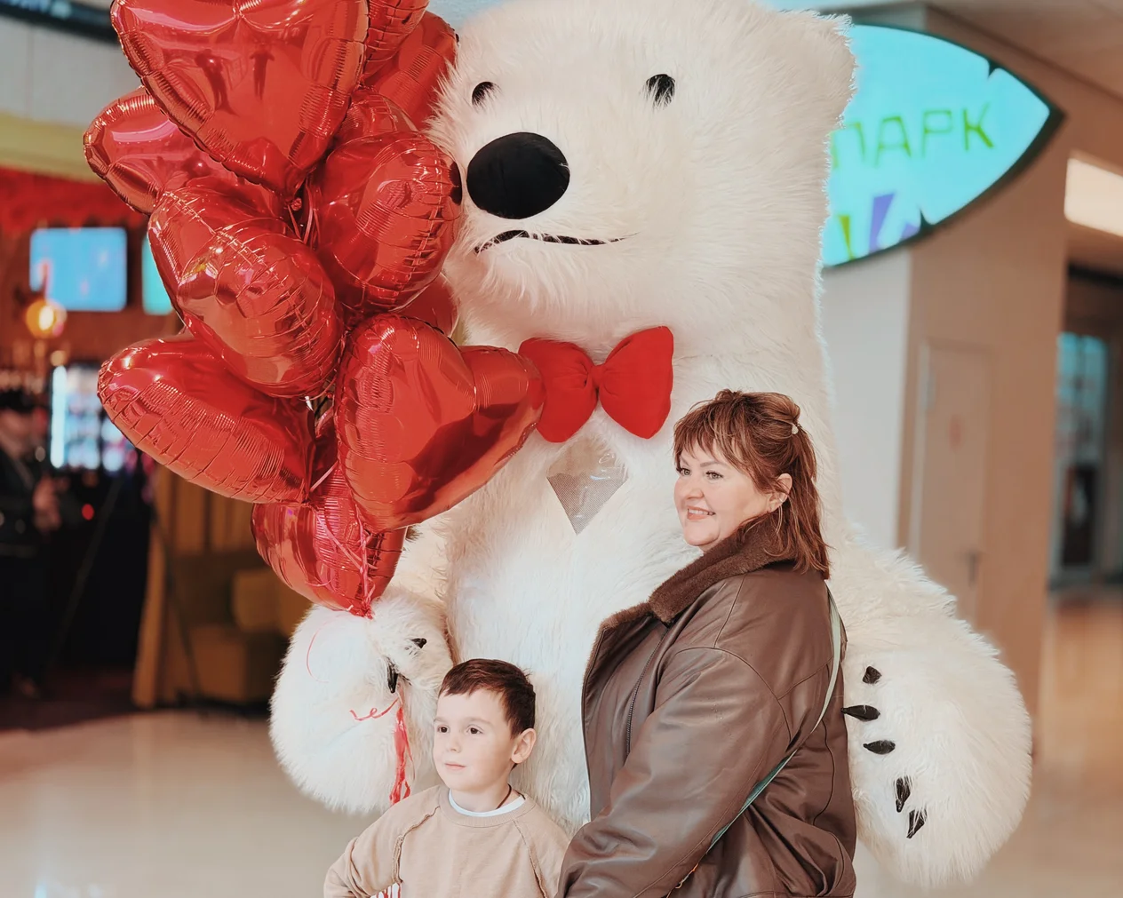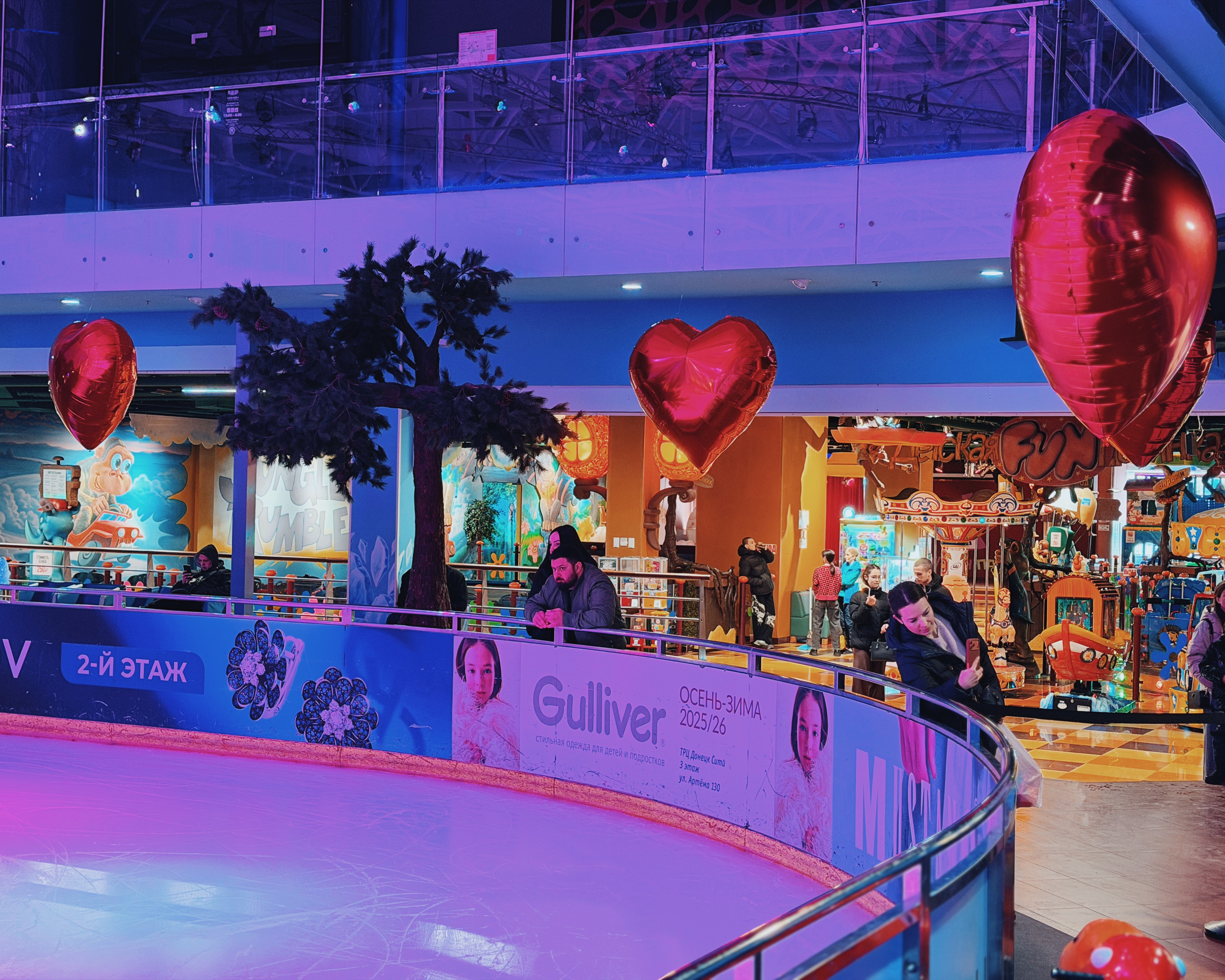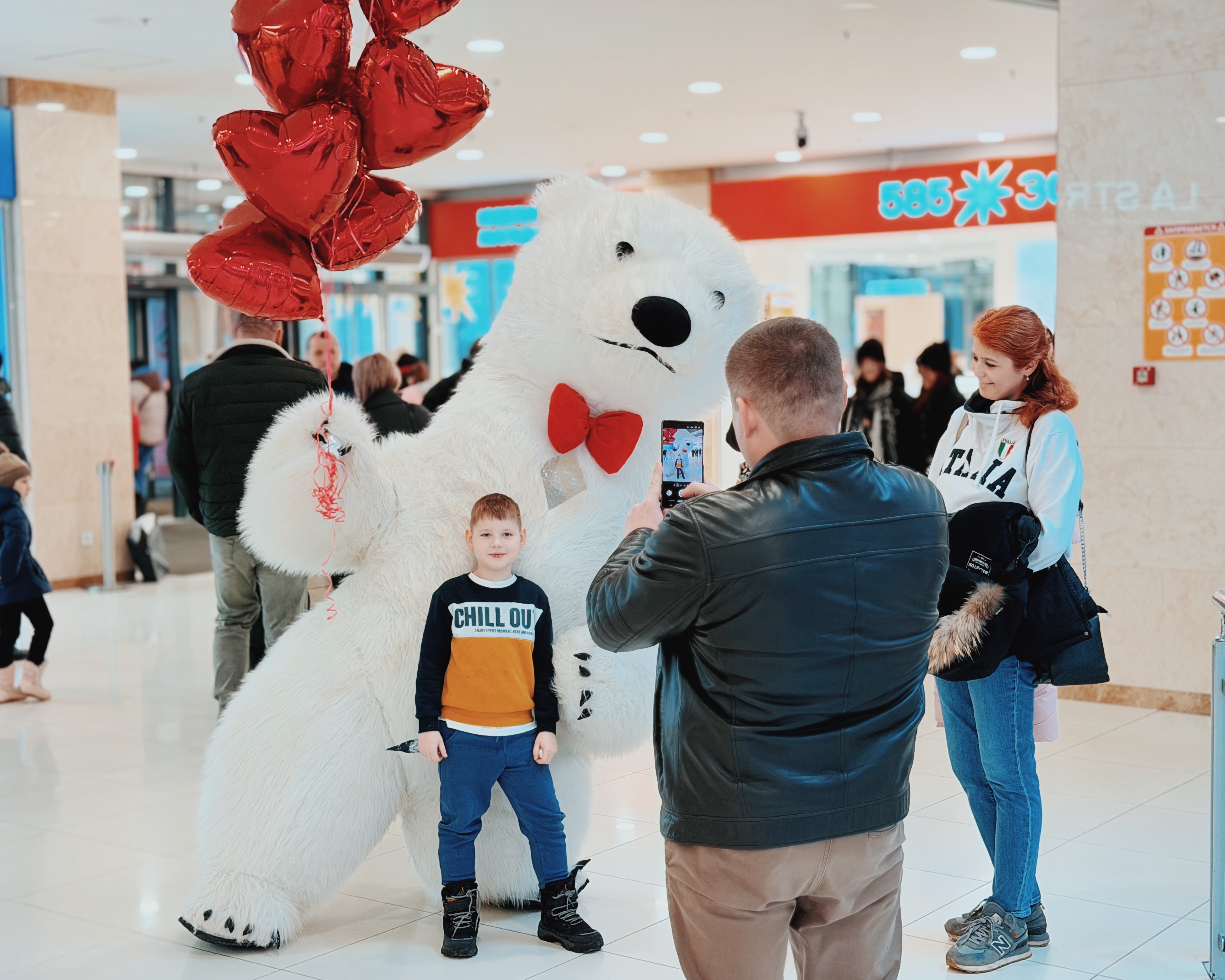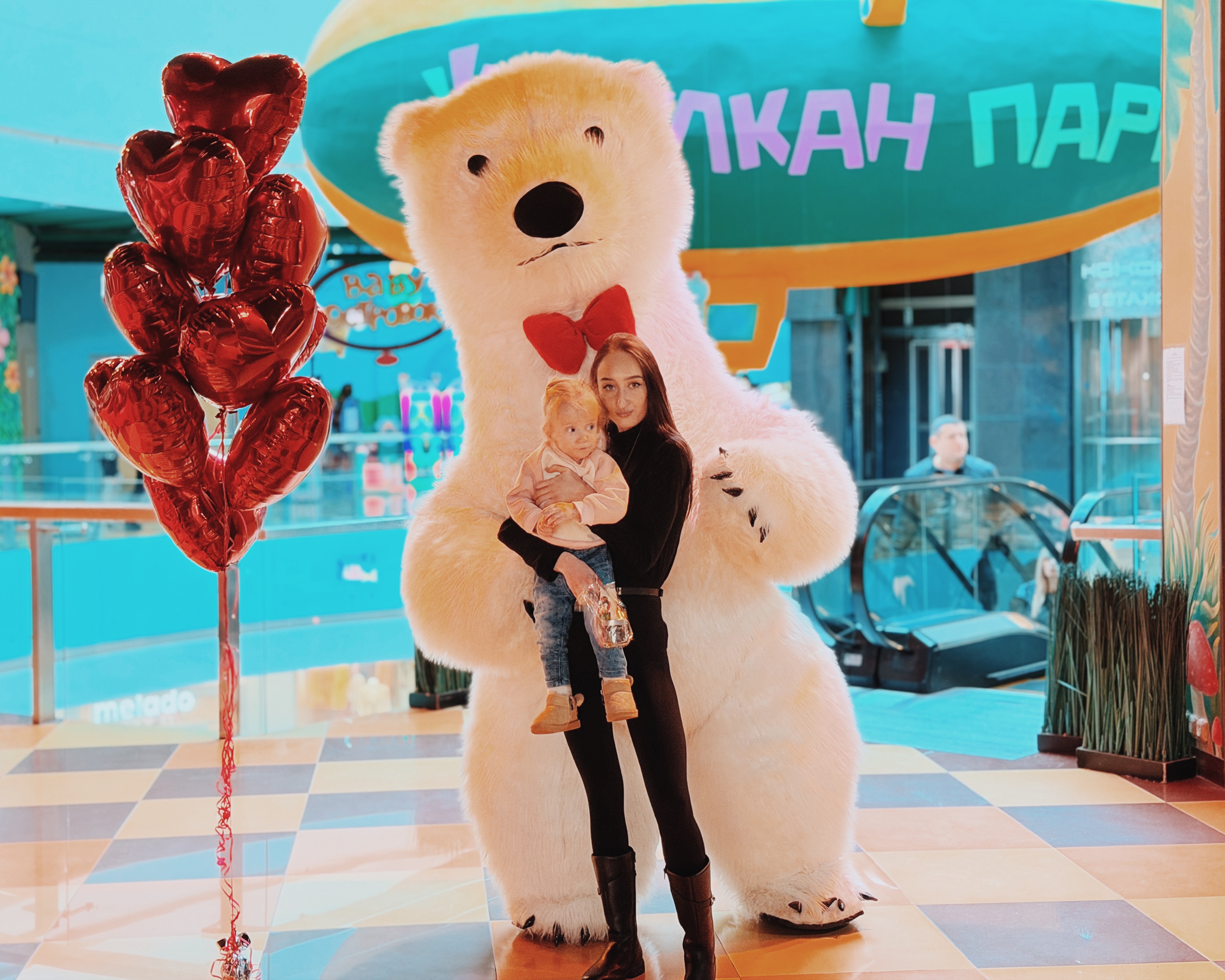 Весь день в торговом центре царила особая атмосфера: воздушные шары, гирлянды из сердец, романтическая музыка создавали настроение праздника.