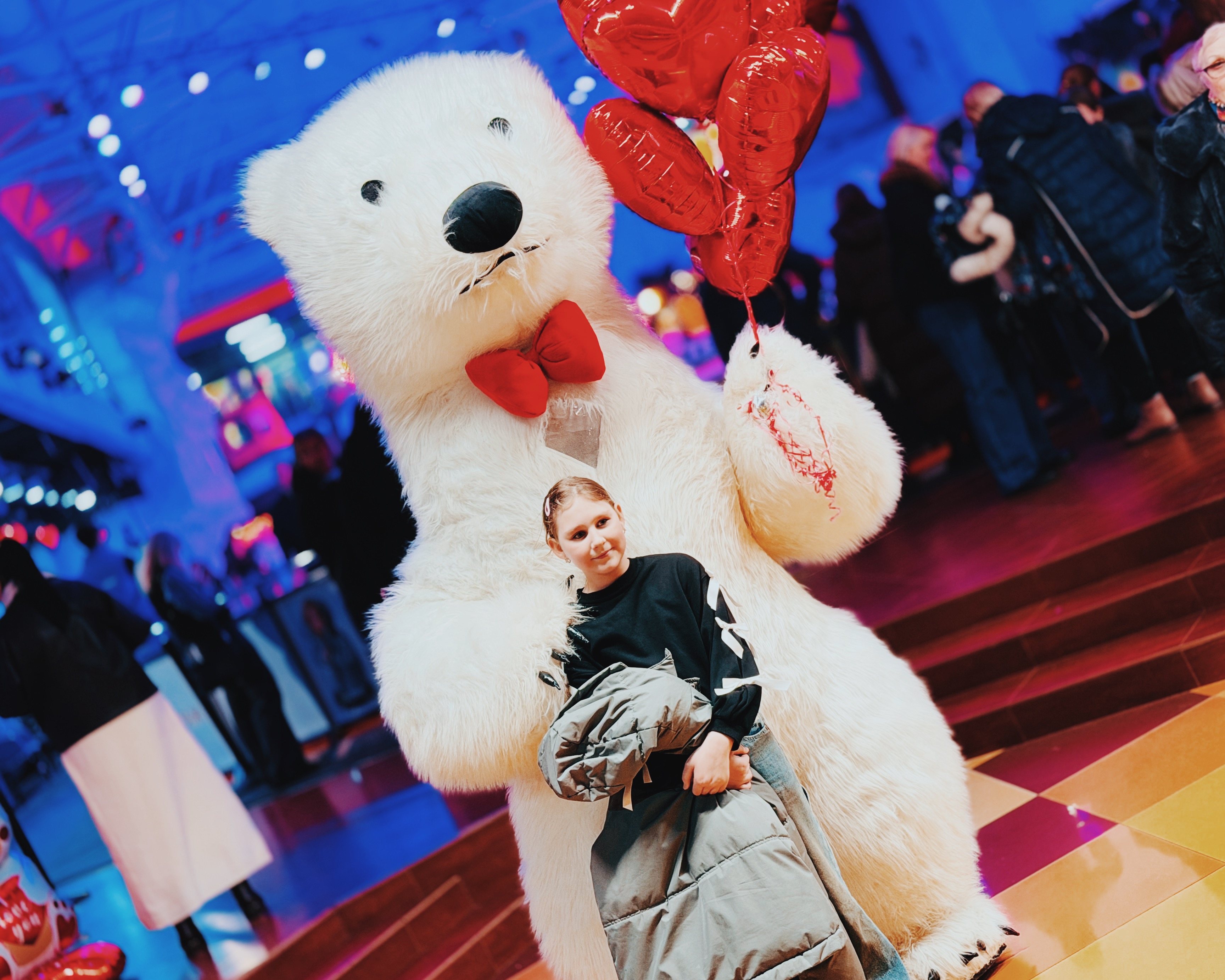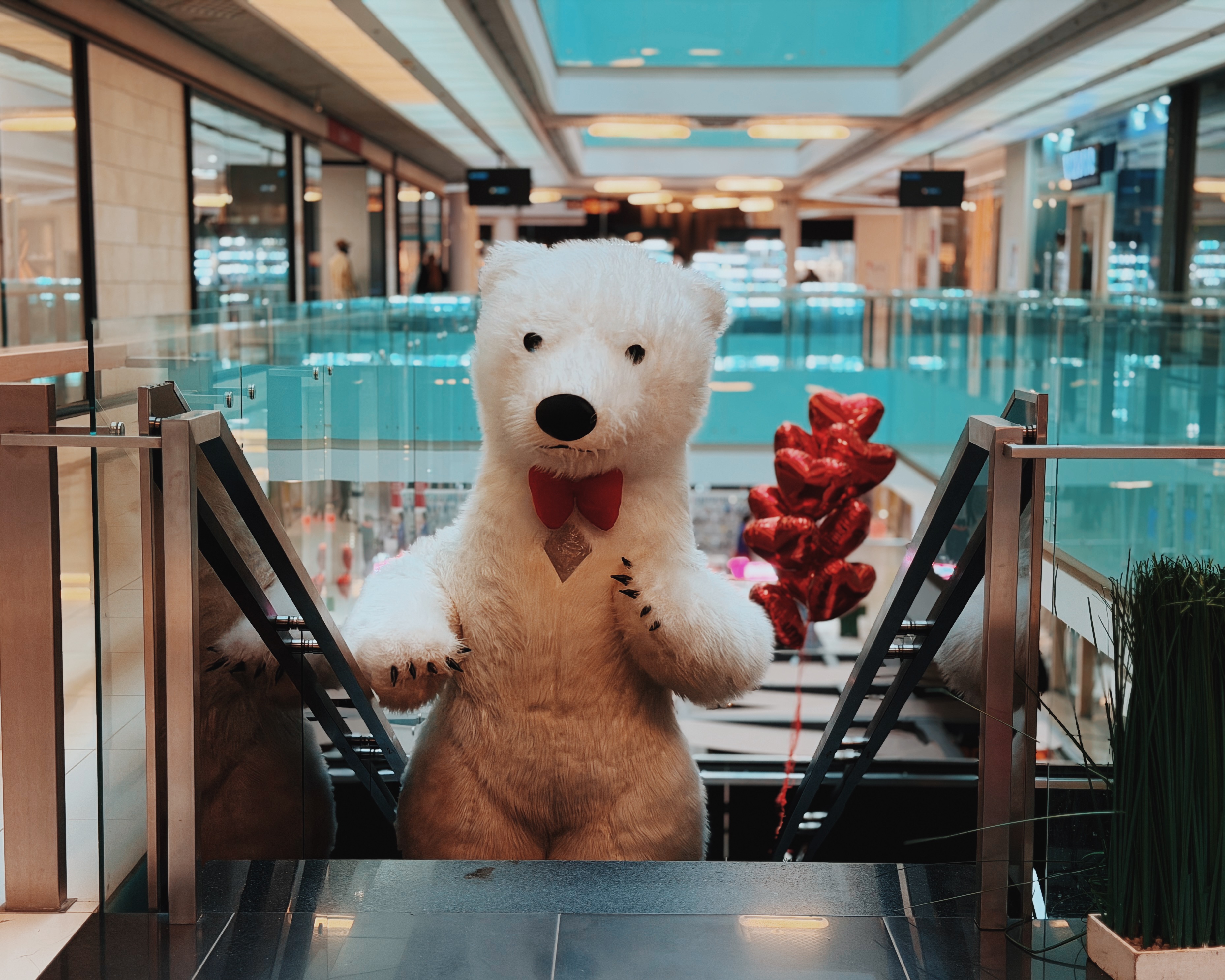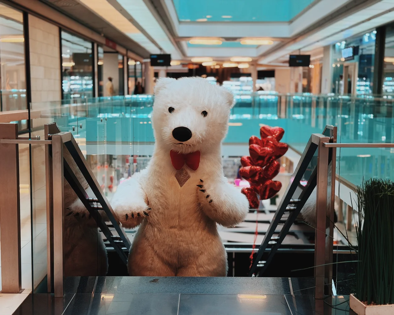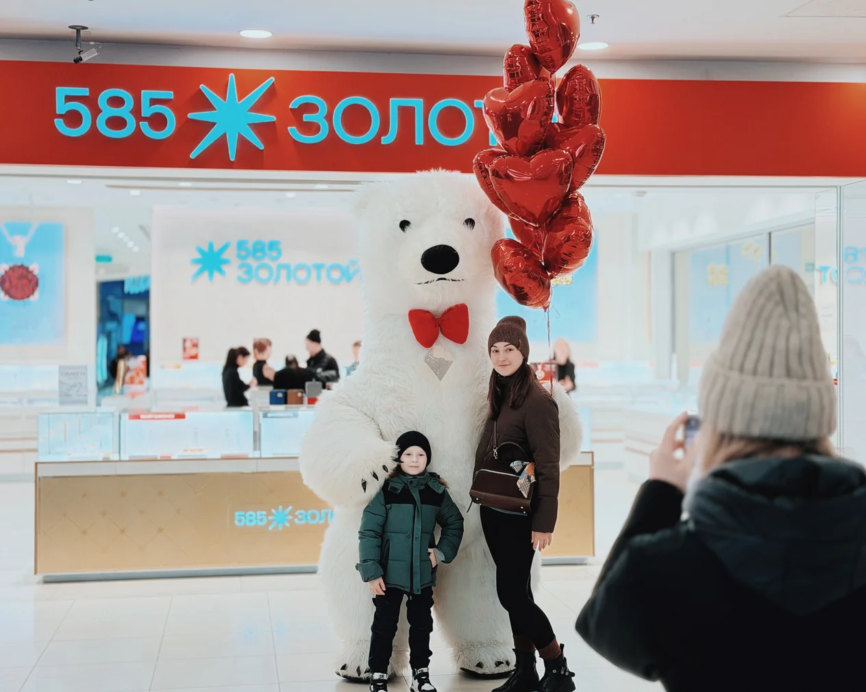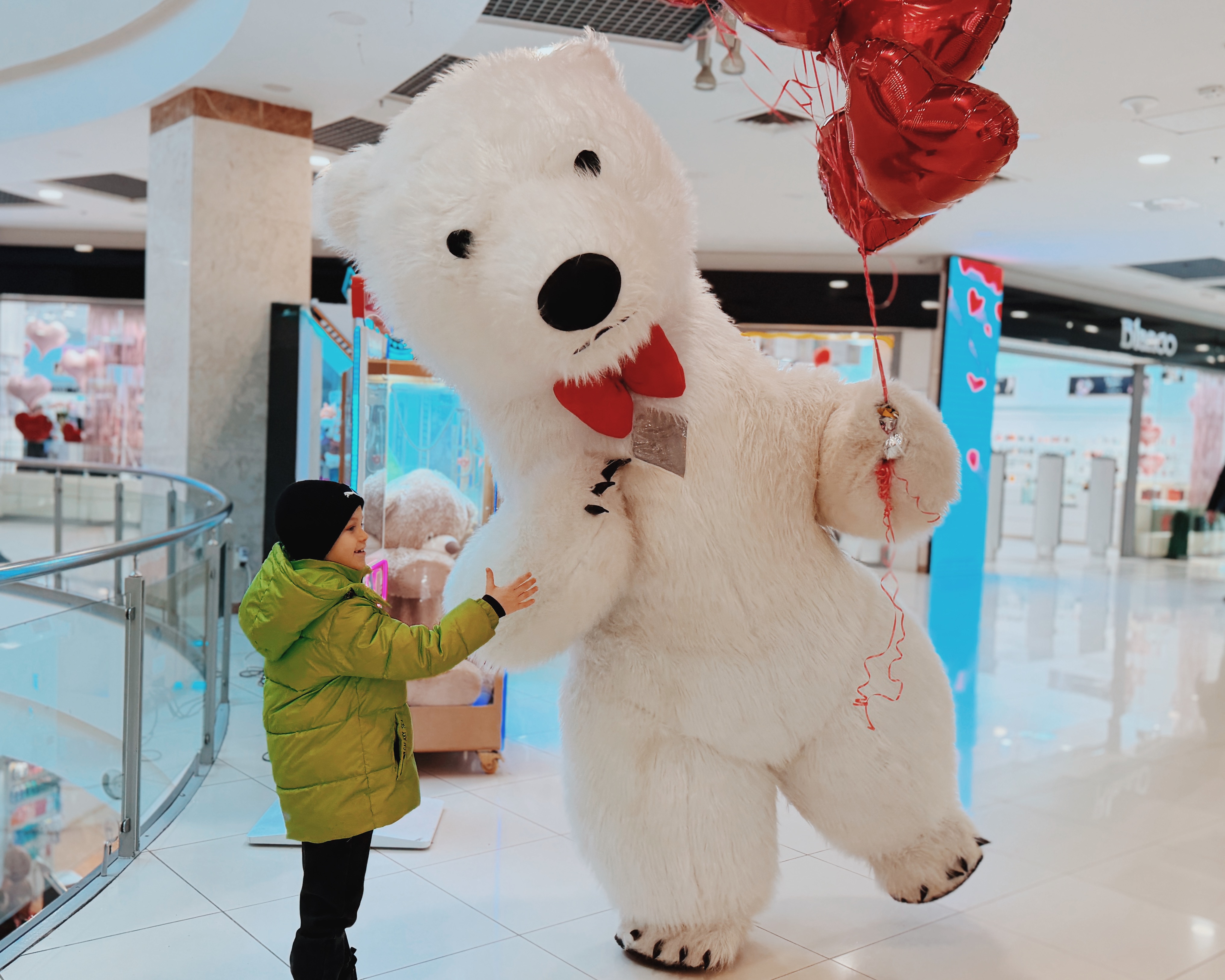 Весь день в торговом центре царила особая атмосфера: воздушные шары, гирлянды из сердец, романтическая музыка создавали настроение праздника.