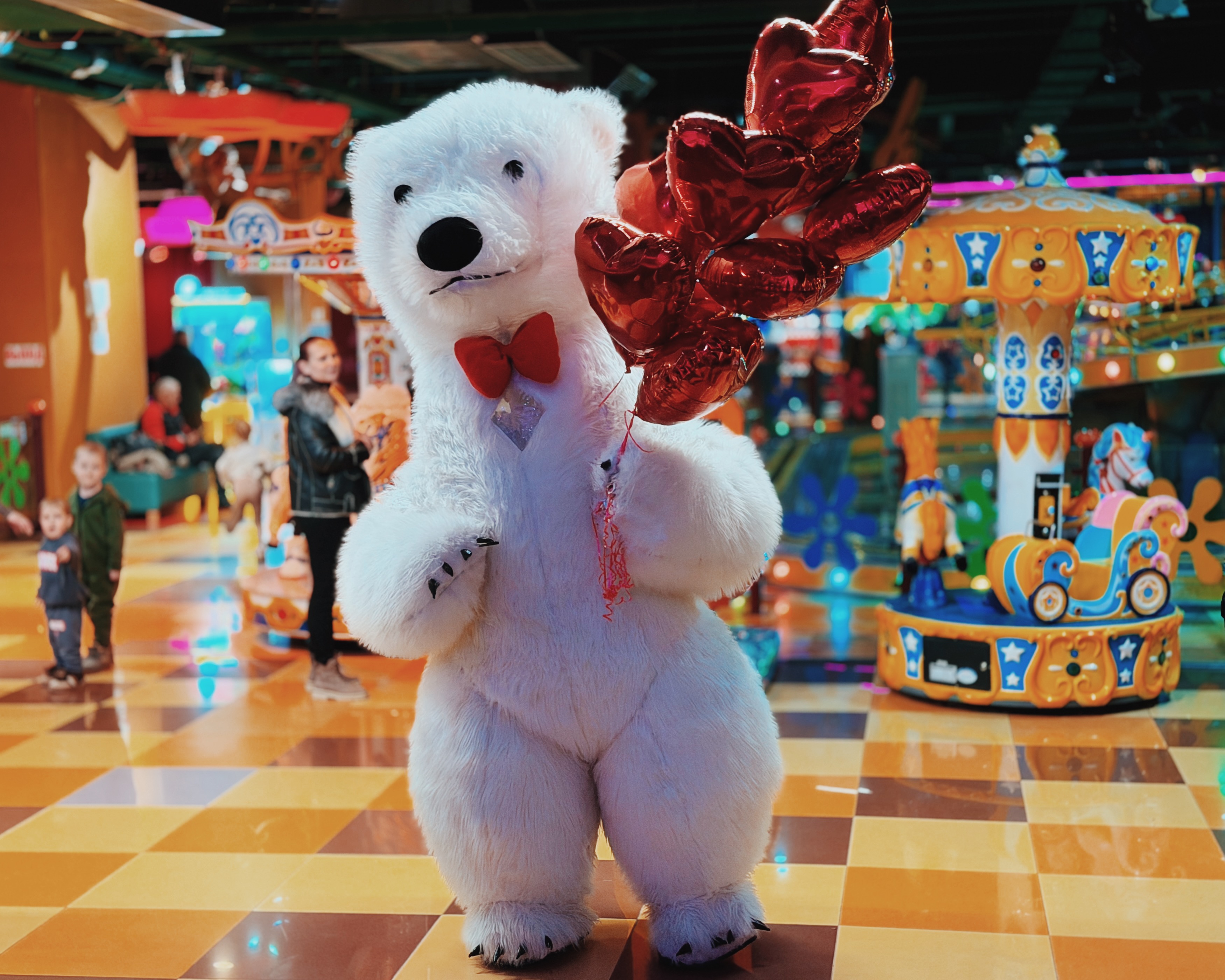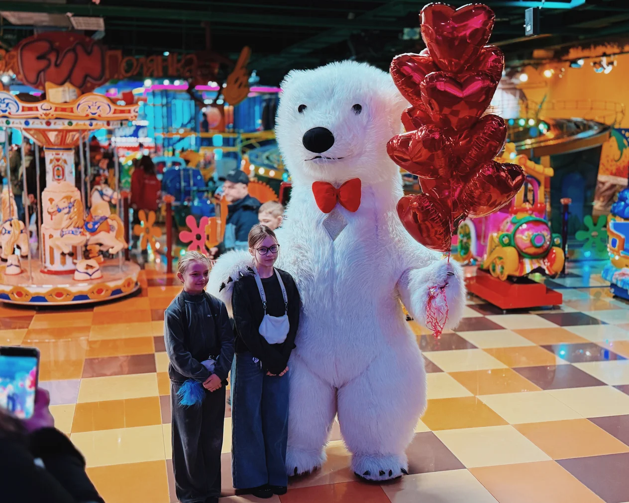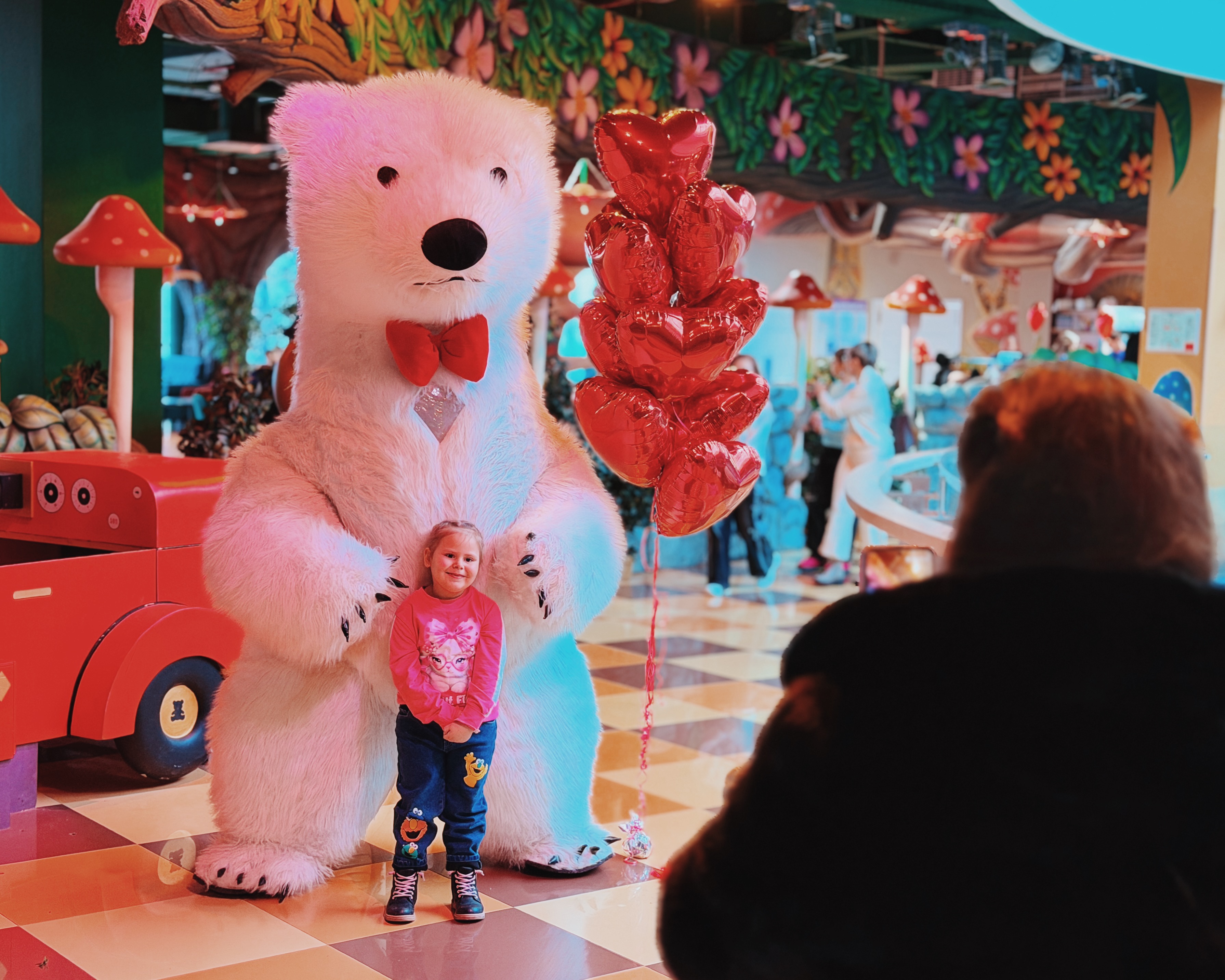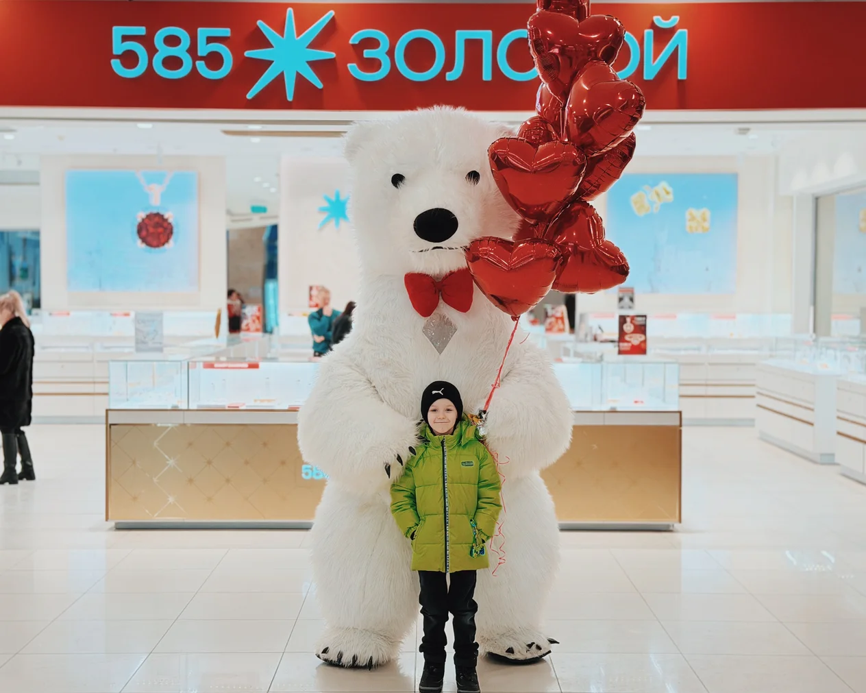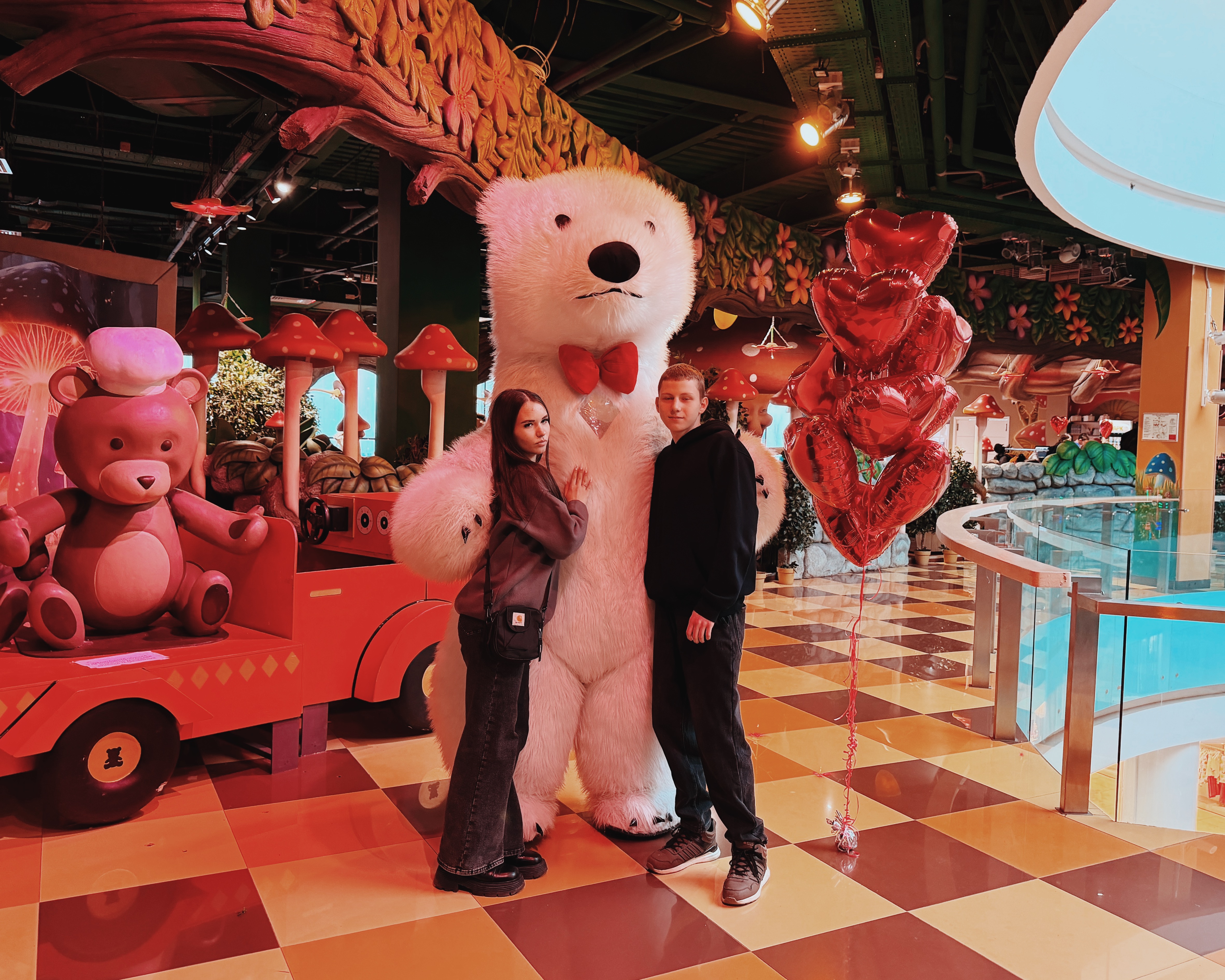 Весь день в торговом центре царила особая атмосфера: воздушные шары, гирлянды из сердец, романтическая музыка создавали настроение праздника.